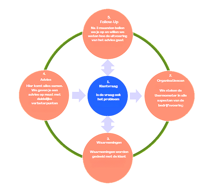 Onze werkwijze levert een adviesrapport op met duidelijke en praktische aanbevelingen zodat jij aan de slag kan om de favoriete leverancier van jouw klanten te worden. Wij kunnen je ook begeleiden in de implementatie van het advies.